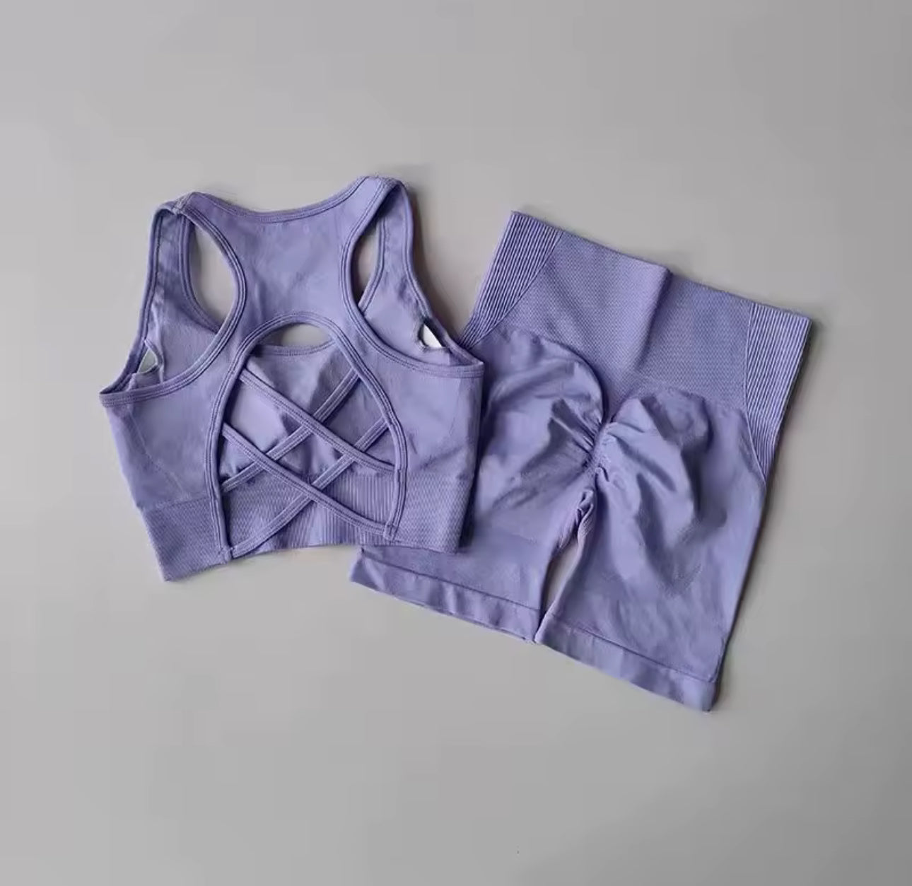 Sleek, seamless, and sculpting — the Lustré Set pairs a high-waisted short with a crisscross back sports bra designed for both performance and style. Crafted from buttery-soft, sweat-wicking fabric, it moves with you through every workout while flattering your shape in all the right places.